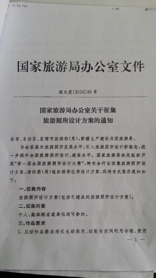 為貫徹落實全國旅游廁所現(xiàn)場會會議精神,進一步提升旅游廁所的發(fā)展水平,國家旅游局組織開展“第一屆全國旅游廁所設(shè)計大賽”,現(xiàn)將通知轉(zhuǎn)發(fā)你們,并提以下要求: