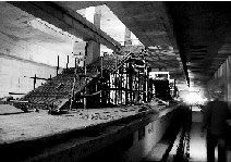 為了加快進(jìn)度,還有一個(gè)比較小的吊裝口,同時(shí)鋪設(shè)鐵軌。