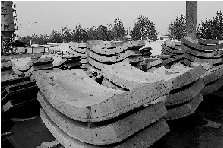 鋪好的枕木,不像我們常見的火車枕木那樣橫跨鐵軌,而是一個(gè)個(gè)枕木墩,鐵軌就被固定在這些枕木墩上。