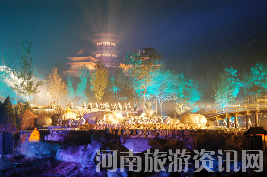 “面對(duì)幽深的山谷,萬籟俱寂;禪樂從空靈、悠遠(yuǎn)的深山飄出……”這是一場(chǎng)震撼心智的中岳嵩山實(shí)景演出。演出按國際著名音樂大師譚盾的原創(chuàng)音樂所表現(xiàn)的形態(tài),以雄奇壯美的嵩山實(shí)景、瑰麗的燈光工程、逼真的音響系統(tǒng)組建的巨大舞臺(tái)和600多名演員的精湛表演,出神入化地描述了雪夜古剎、月照塔林、頌禪法會(huì)、溪山坐禪、少林拳棍、女童牧歸等情景。