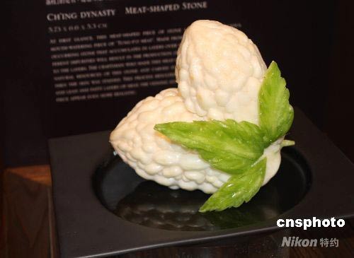 故宮重寶“肉形石”,原為瑪瑙類礦物精品。作為“國(guó)寶宴”上的一道主菜,則選用上等的蹄膀肉,先入鍋鹵約二至三小時(shí),靜置冷卻后再用刀工雕出外型。