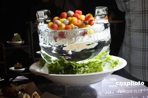 “白玉錦荔枝”原擺放在北京故宮乾清宮東暖閣,原件是仿雕苦瓜。主廚選用臺(tái)灣精致農(nóng)業(yè)的代表產(chǎn)品之一的“蘋(píng)果苦瓜”做食材,這種苦瓜外表白胖圓潤(rùn),其造型與故宮文物原件十分相似,拌以沙拉醬,味甘甜。