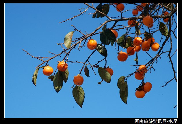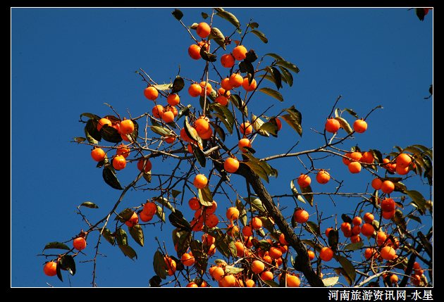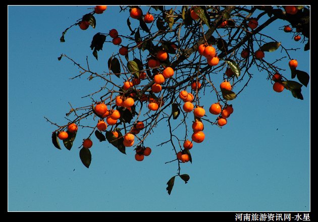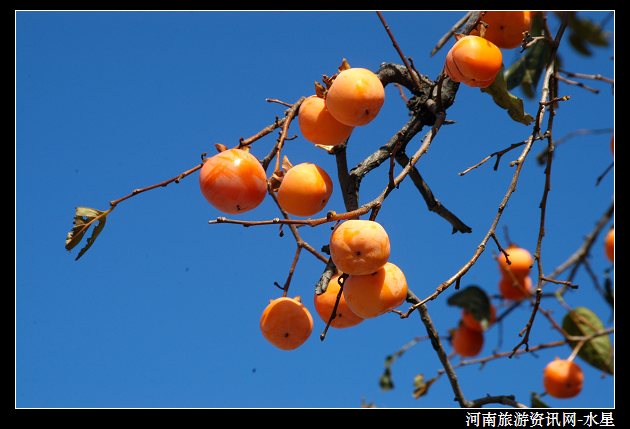筆者近日在黃河小浪底采風(fēng),拍攝到一些孤掛枝頭的柿子,很是美麗。