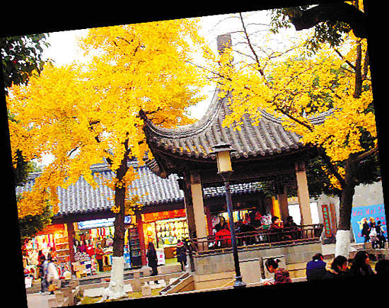 蘇州觀前街上大量的銀杏樹葉開始變成金黃色,將街頭點(diǎn)綴得格外美麗