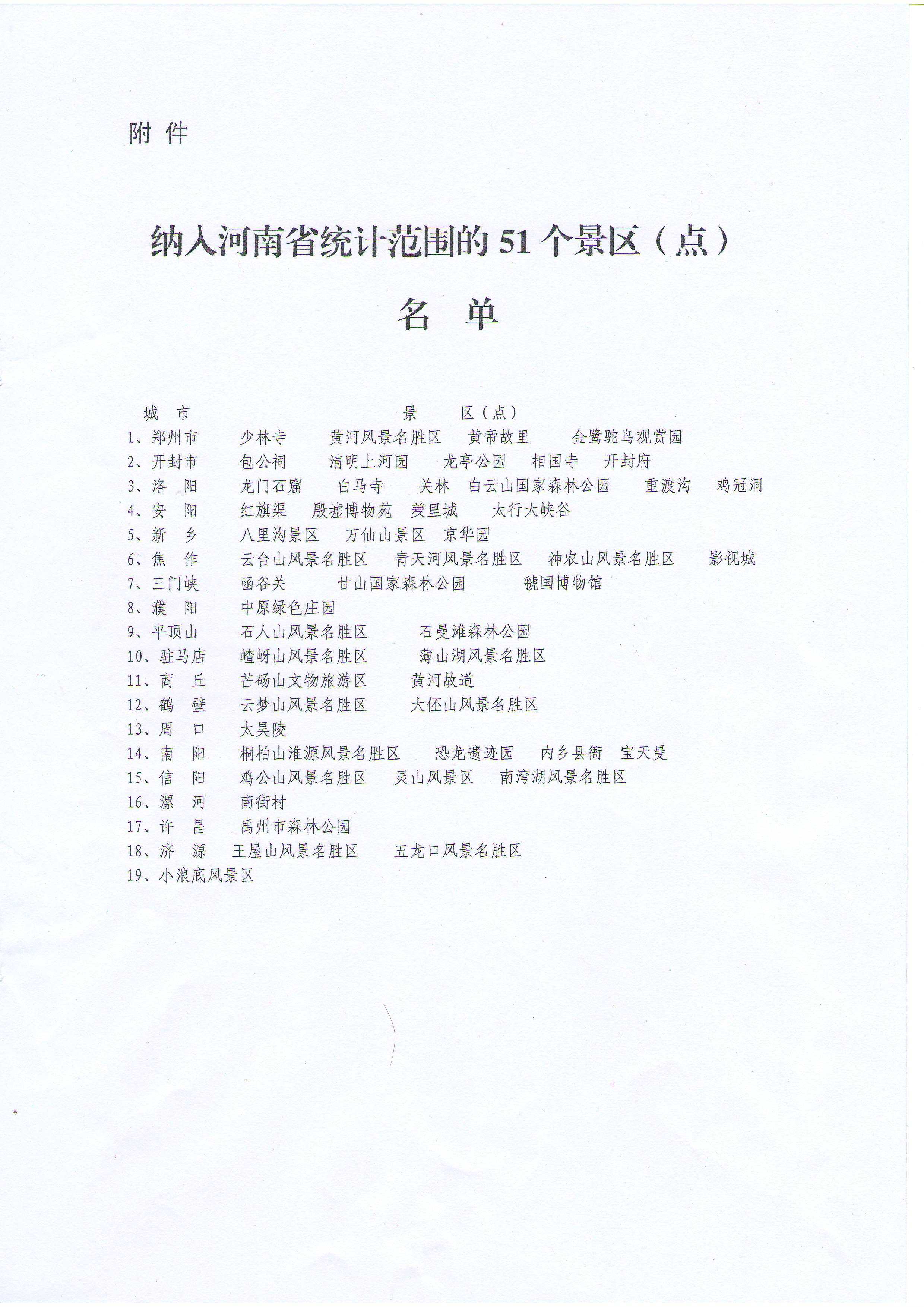 附件:納入河南省統(tǒng)計范圍的51個景區(qū)(點(diǎn))名單。