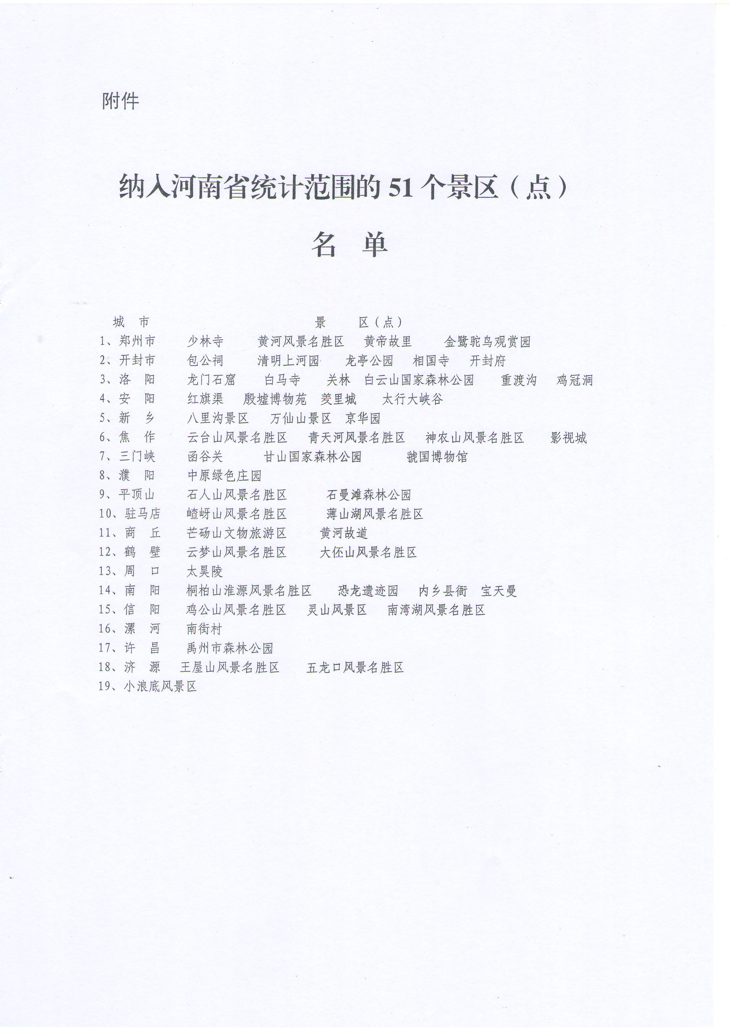 附件:納入河南省統(tǒng)計范圍的51個景區(qū)(點)名單。