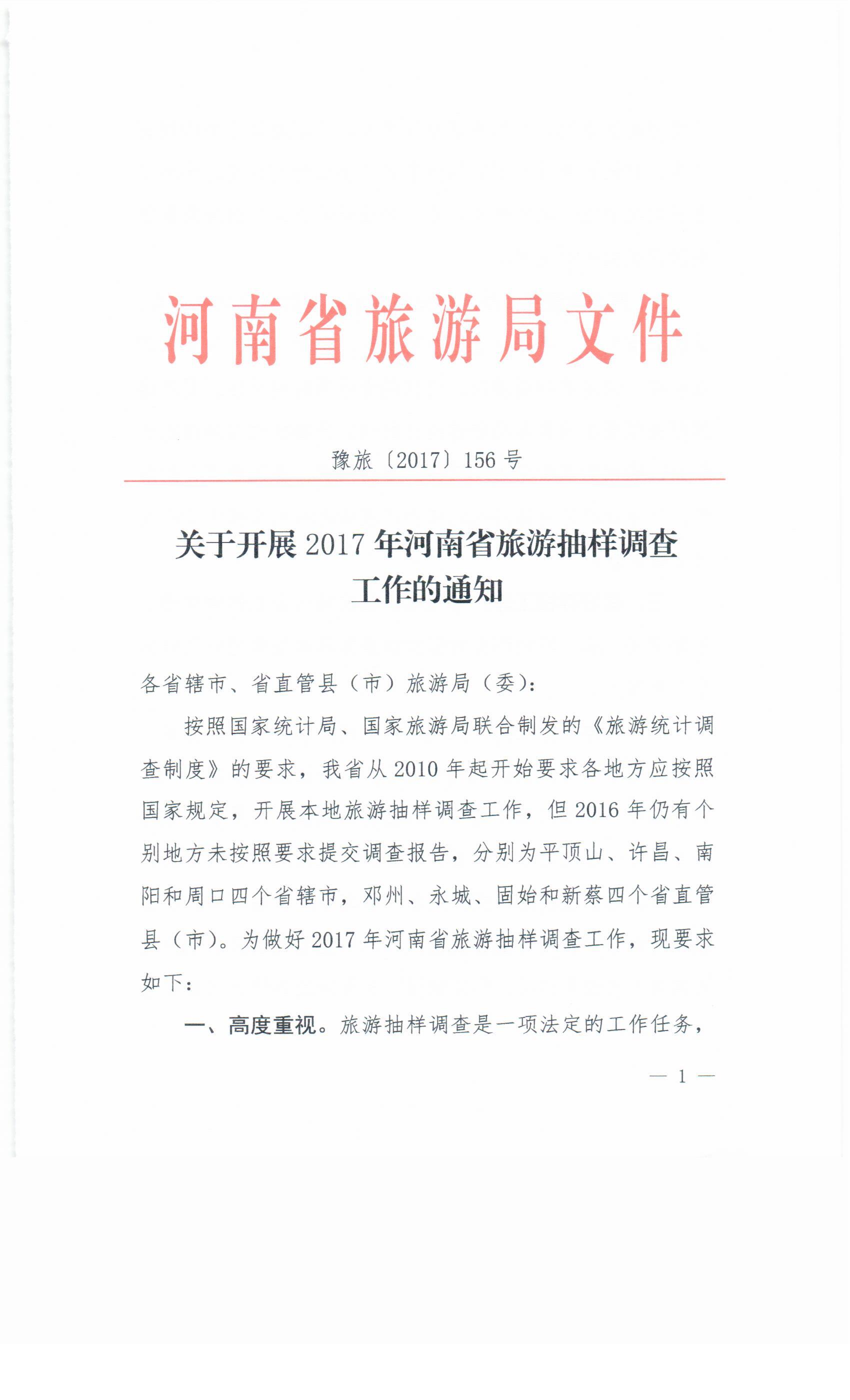 按照國(guó)家統(tǒng)計(jì)局、國(guó)家旅游局聯(lián)合制發(fā)的《旅游統(tǒng)計(jì)調(diào)查制度》的要求,我省從2010年起開始要求各地方應(yīng)按照國(guó)家規(guī)定,開展本地旅游抽樣調(diào)查工作,但2016年仍有個(gè)別地方未按照要求提交調(diào)查報(bào)告,分別為平頂山、許昌、南陽(yáng)和周口四個(gè)省轄市,鄧州、永城、固始和新蔡四個(gè)省直管縣(市)。為做好2017年河南省旅游抽樣調(diào)查工作,現(xiàn)要求如下: