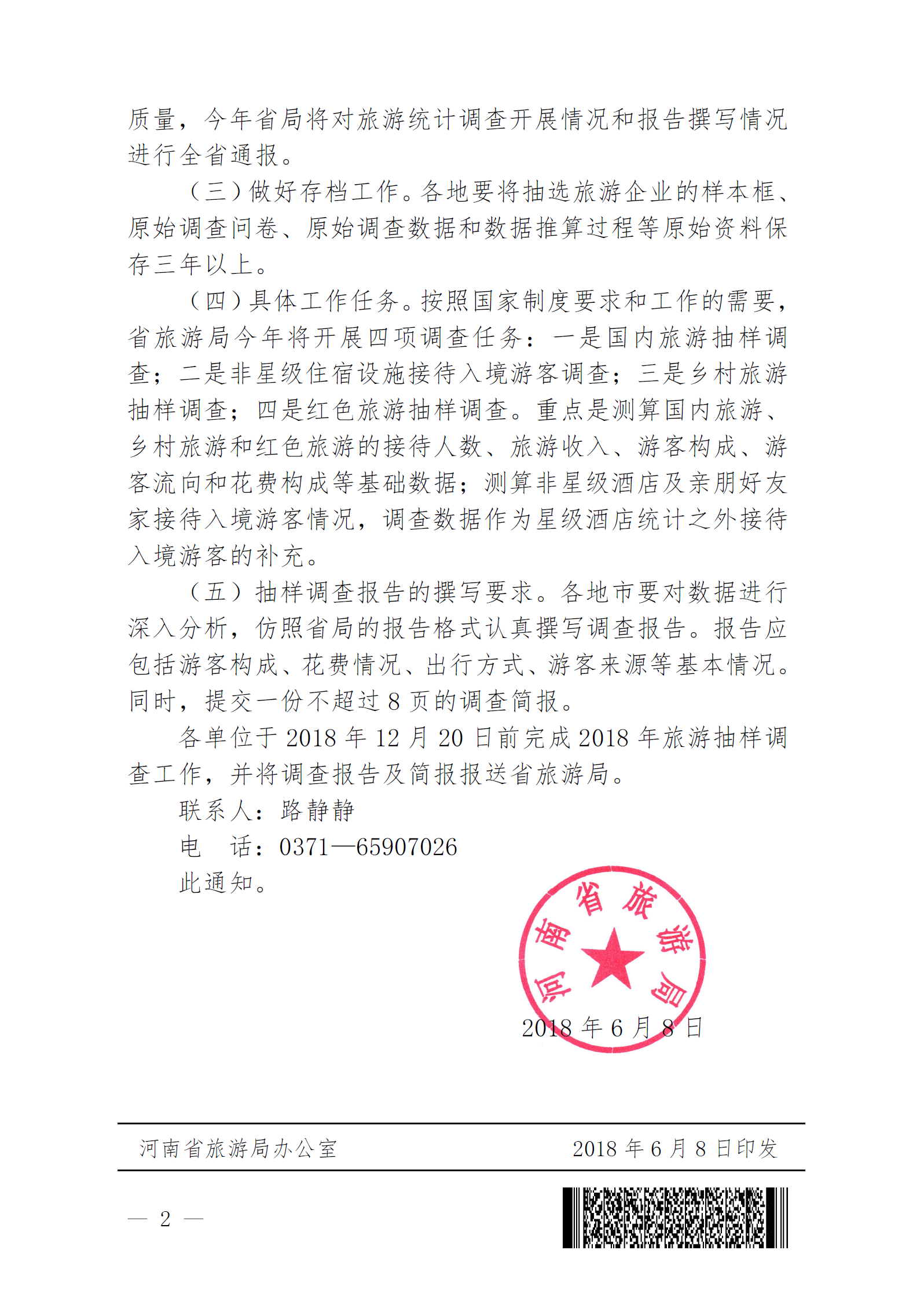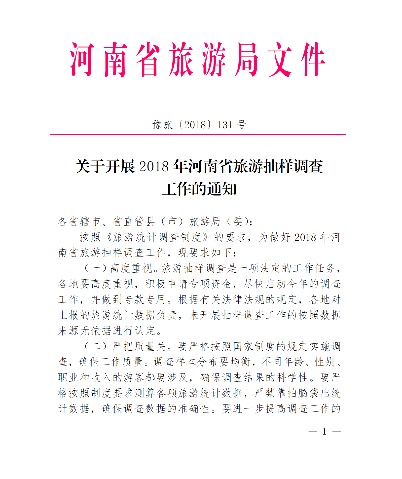 關(guān)于開展2018年河南省旅游抽樣調(diào)查工作的通知