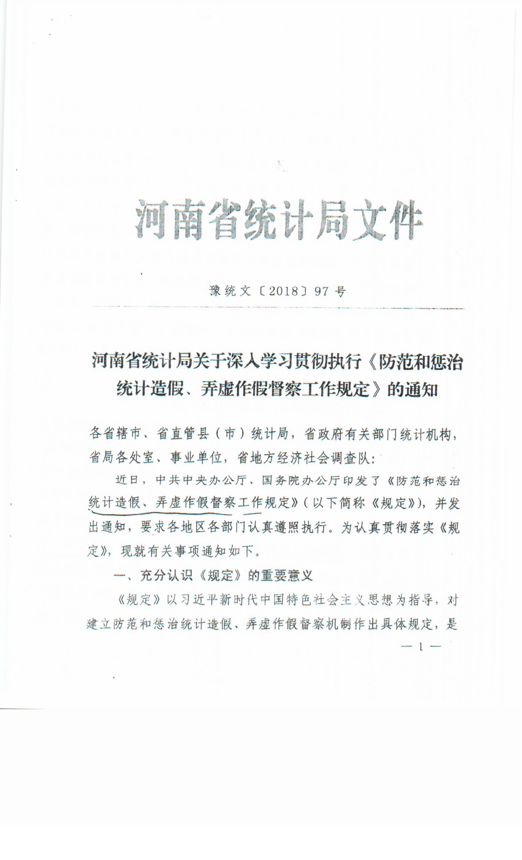 關于轉(zhuǎn)發(fā)《河南省統(tǒng)計局關于深入學習貫徹執(zhí)行<防范和懲治統(tǒng)計造假、弄虛作假督察工作規(guī)定>的通知》的通知