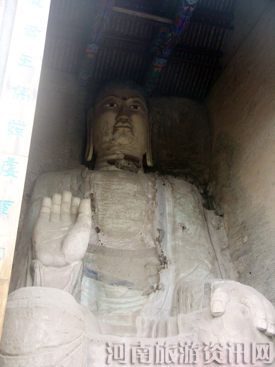 伾山大佛依山鑿就,高與崖齊,高22.29米,開鑿于距今約1600余年的十六國后趙時期,而其詳細的建造年代至今無人能夠說出。其開鑿年代比樂山大佛早400多年,高度比龍門大佛高5米有余。因此,被專家稱為“中國最早,北方最大”的大型摩崖石佛,F存佛像是一座坐式的大彌勒佛像,造型古樸,線條遒勁,風格雄建,反映了早期造像的藝術特點,與北魏后期尤其是隋唐造像的清秀勻稱風格大不相同,是我國佛教造像史發(fā)展中留下的典型范例。其歷史、考古、宗教、藝術價值早已引起專家學者的高度重視。被旅游界列為精品王牌。