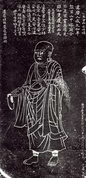 達(dá)摩之死,世所共知。東魏使臣宋云因事出使西域久而未歸,對于達(dá)摩辭世的事一無所知。達(dá)摩死后兩年,宋云從西域返回洛京。在途經(jīng)蔥嶺的時候,迎見達(dá)摩一手拄著錫杖,一手掂著一只鞋子,身穿僧衣,赤著雙腳,由東往西而來。二人相遇后,宋云急忙停步問道:“師父你往哪里去?”達(dá)摩回答說:“我往西天去。”接著又說:“你回京以后,不要說見到了我,否則將有災(zāi)禍。”二人道罷別,各奔東西。