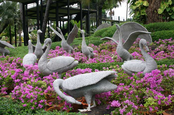 在東芭樂園,除了可以參觀文物館里陳列的珍奇古董,可以觀看展現(xiàn)泰國文化傳統(tǒng)和風(fēng)土人情的民族歌舞,以及大象踢足球、跳舞、拔河等異彩紛呈的表演外,而更令人賞心悅目的是,由眾多鮮花組成的碧草如茵、花木遍植的宜人景色。在這個(gè)號(hào)稱世界十大蘭花圃之一的蘭花園里,數(shù)十萬株蘭花芬芳撲鼻,爭奇斗艷,仙人掌花圃中,各種各樣的仙人掌千奇百態(tài),風(fēng)姿動(dòng)人,如詩如畫。據(jù)介紹,這個(gè)田園詩畫的樂園是曼谷一個(gè)富商家族經(jīng)營的,早在帕他雅還默默無聞的時(shí)候,這個(gè)家族買下大塊土地廣植椰樹,隨著帕他雅從一個(gè)小漁村搖身變?yōu)閲庥稳饲嗖A的“度假天堂”時(shí),東芭樂園也成為到帕他雅游客少不了要去的地方。