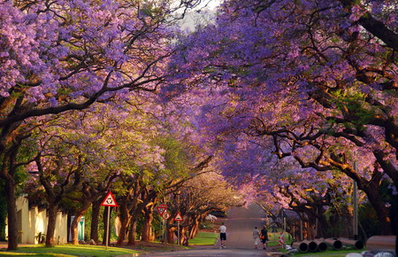 有“紫薇之城”美譽(yù)的比勒陀利亞全市共有8萬株紫薇樹,每到10月份初夏來臨時(shí),紫花盛開。新華社記者陳銘攝
