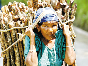 《拾柴婦女》:從樟木到加都途中拍到的,那里的人挑貨物都是用頭系住條布然后把物件背起。