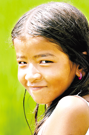 《微笑》 :在博卡拉看到一班小孩在玩水,其中這個小女孩的眼神吸引了我。