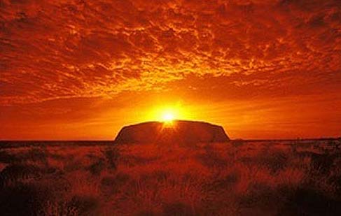 艾爾斯巖(AYERSROCK)是領(lǐng)略北領(lǐng)地之神秘的首選地,這個(gè)地區(qū)的得名源于一塊叫做Uluru的石頭。這塊石頭是目前世界上最大的整塊不可分割的單體巨石。由于被土著人賦予了圖騰的含義,被當(dāng)?shù)厝俗u(yù)為象征澳大利亞的心臟。據(jù)說距今已有5億年歷史。長(zhǎng)3.62公里,寬2公里,高348米,巖面上鐫刻著無數(shù)平行的直線紋路,形狀像兩端略圓的長(zhǎng)面包。巖石色澤赭紅,光溜溜的表面在太陽下閃著光芒,在空寂無物的廣袤沙漠上突兀挺拔,直刺蒼穹,既雄偉壯觀又神秘莫測(cè)。