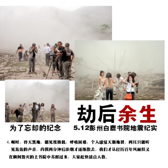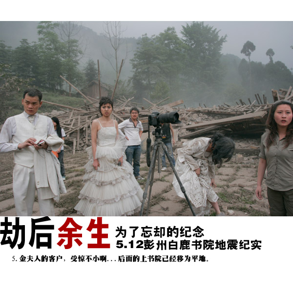 14:38分左右,我們?yōu)榭蛻魮Q裝造型,我突然聽到好像下雨的聲音,轉(zhuǎn)眼一看,瓦片從房頂?shù)粝聛恚又褪翘煨貏,突然一個MM喊了聲,地震了!說是遲,那是快,所有的人都跑到書院的中心位置,就地趴下......