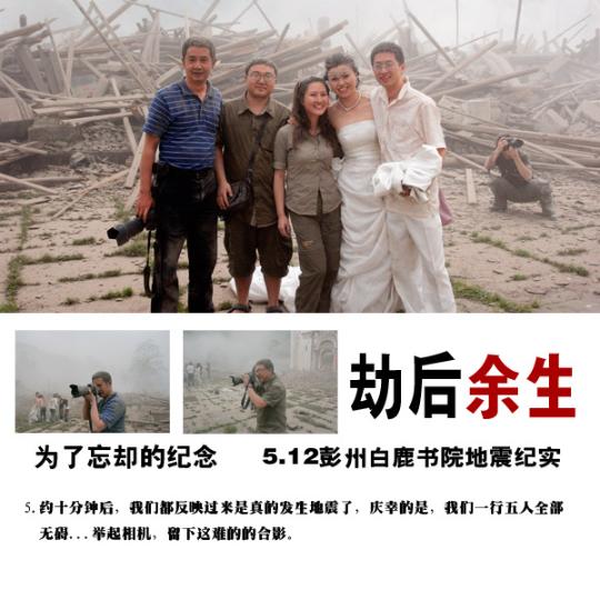 約十分鐘后,我們都反應(yīng)過來是真的發(fā)生地震了。慶幸的是,我們一行五人全部無礙。舉起相機,留下這難得的合影。