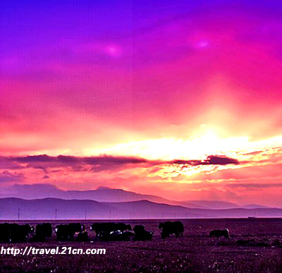從蘭州到臨夏的一路,幾乎是穆斯林的天地,路邊的清真寺此伏彼起,蘭州城里的建筑多為伊斯蘭風格,規(guī)模龐大。一過臨夏與夏河交界的土門關,情形大變,再也不見清真寺。取而代之的,是白色的喇嘛塔——從這兒起已經進入藏區(qū)了。純粹的青藏高原風光展現(xiàn)在我們面前,大山下寬緩的草甸上,緩緩走著牦牛。