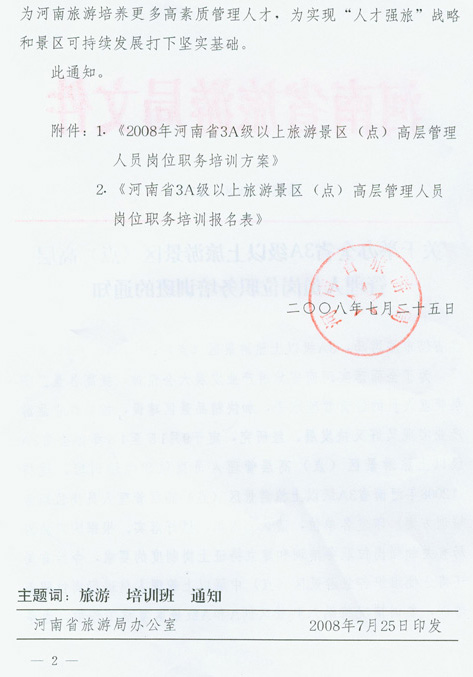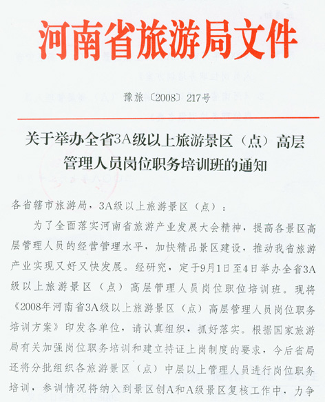 附件1:2008年河南省3A級(jí)以上旅游景區(qū)(點(diǎn))高層管理人員培訓(xùn)方案