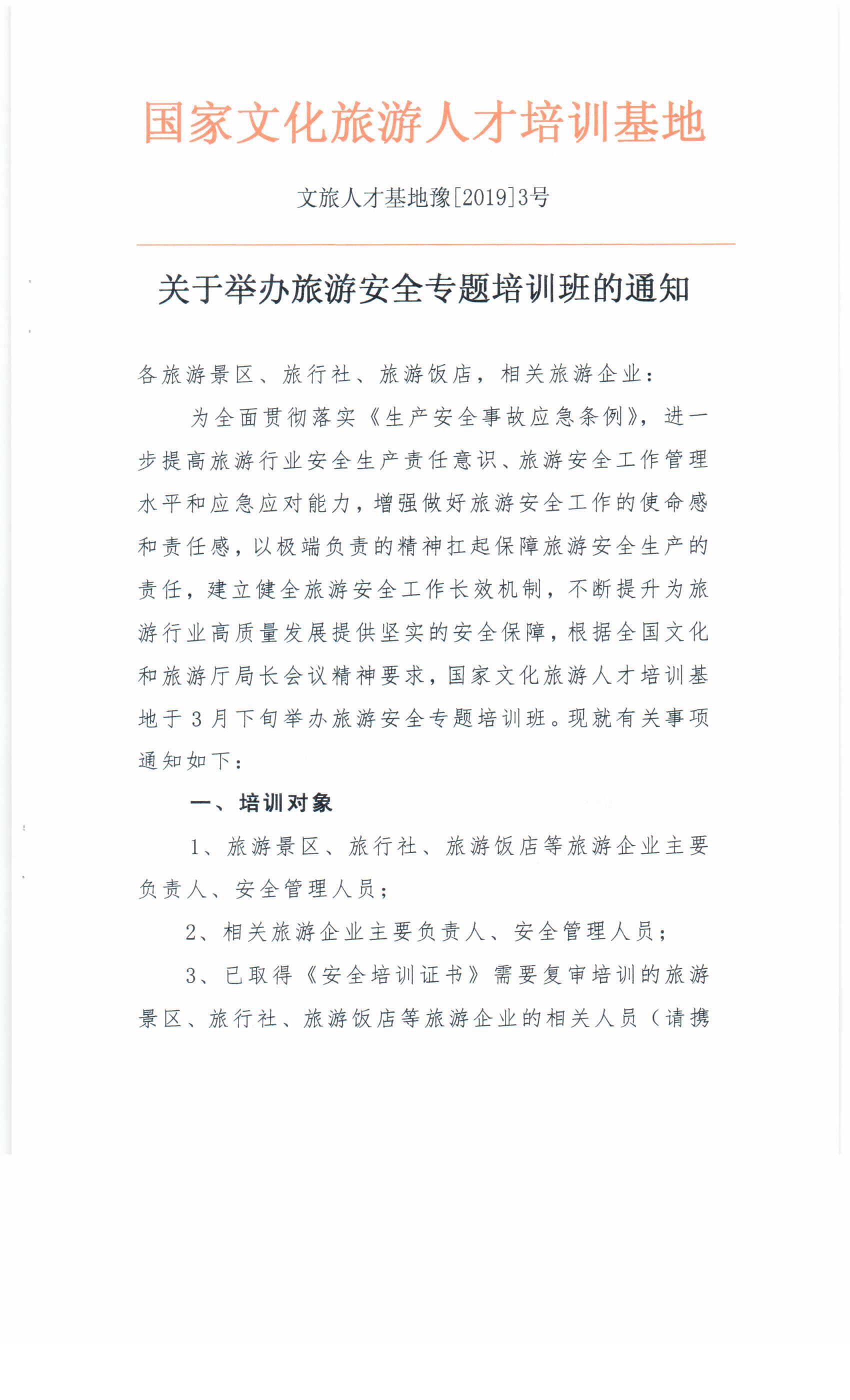 關(guān)于舉辦旅游安全專題培訓(xùn)班的通知