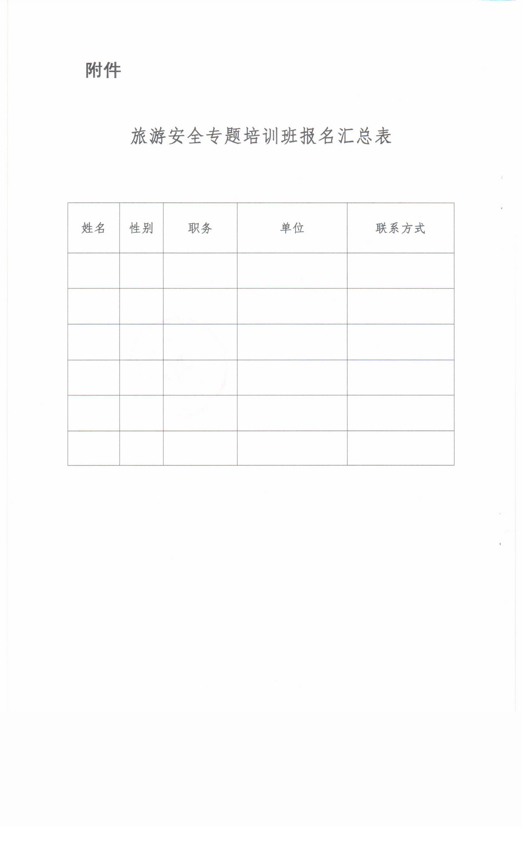 附件:旅游安全專題培訓(xùn)班報(bào)名匯總表