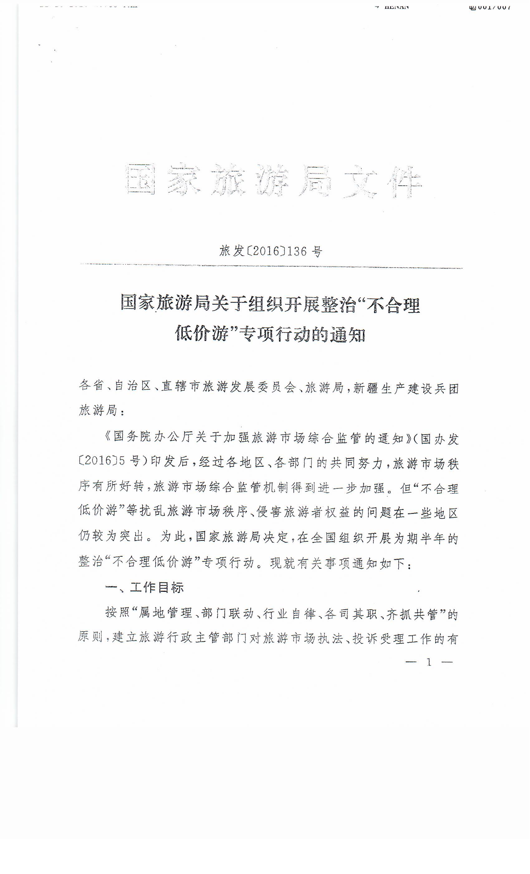 附件:國家旅游局《關(guān)于組織開展整治“不合理低價游”專項行動的通知》(旅發(fā)[2016]136號)