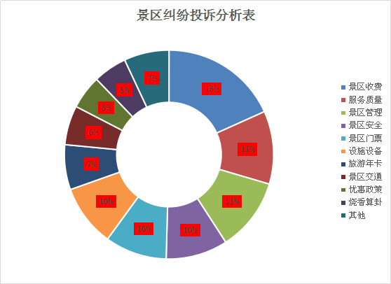 投訴景區(qū)115件,其中景區(qū)收費糾紛21件,服務(wù)質(zhì)量糾紛13件,景區(qū)管理糾紛13件,景區(qū)安全投訴11件,景區(qū)門票糾紛11件,景區(qū)設(shè)施設(shè)備糾紛11件,旅游年卡糾紛8件,景區(qū)交通糾紛7件,優(yōu)惠政策糾紛6件,景區(qū)燒香算卦糾紛6件,其他糾紛8件。