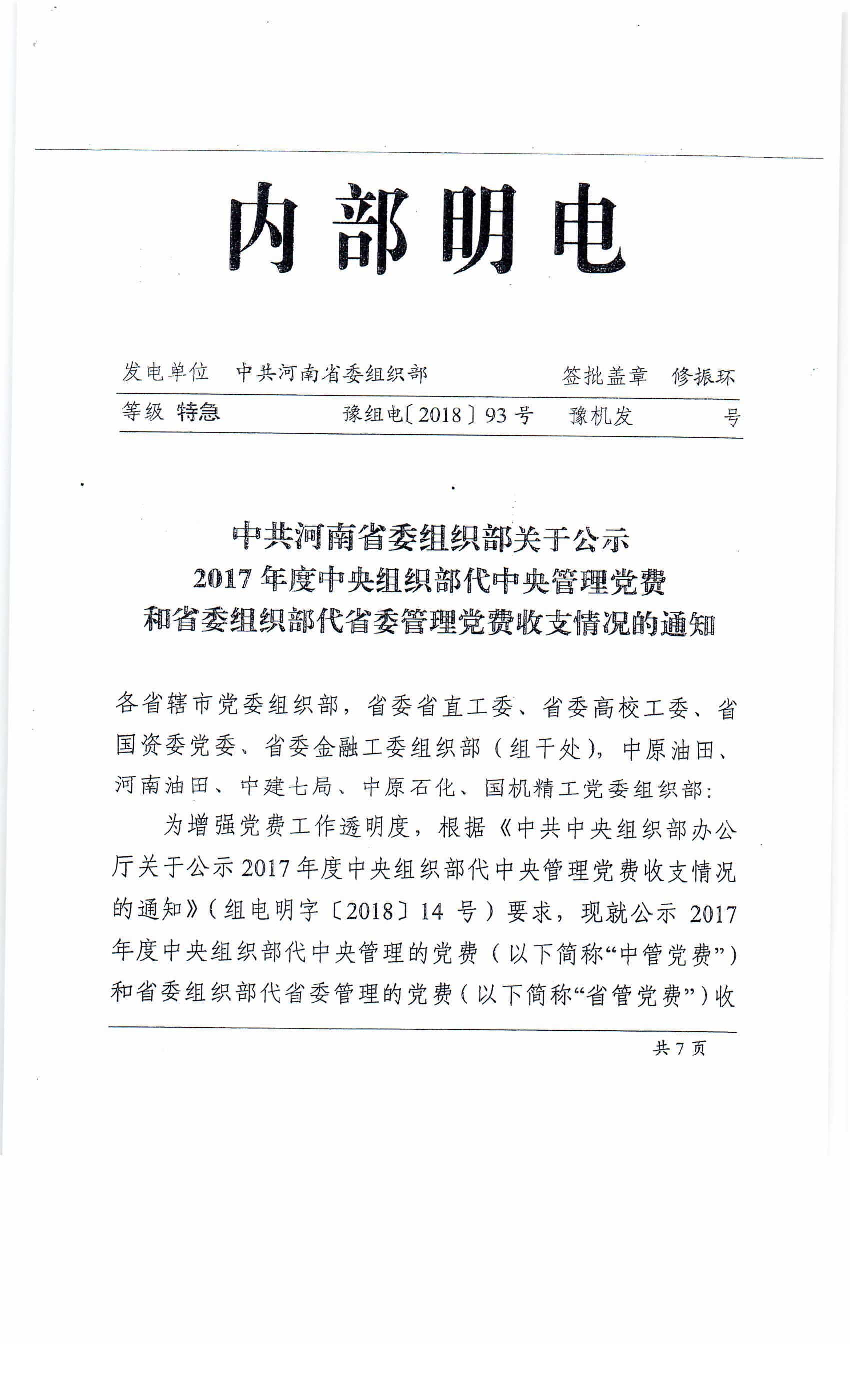 關于公示2017年度中央組織部代中央管理黨費和省委組織部代省委管理黨費收支情況