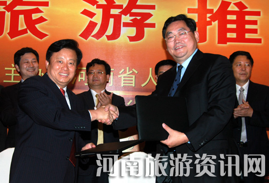 河南省旅游局局長(zhǎng)蘇福功、陜西省旅游局局長(zhǎng)董憲民簽訂《旅游合作協(xié)議》