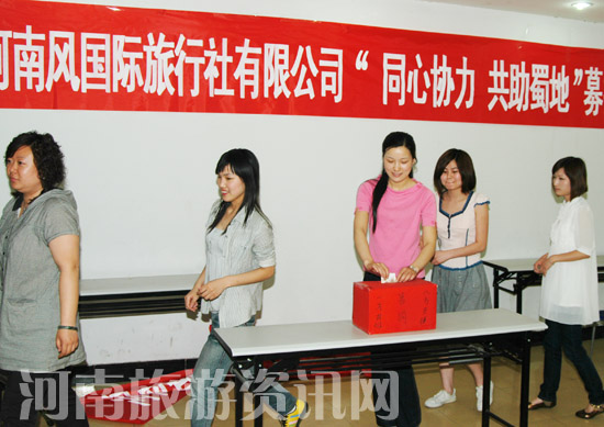 另據(jù)了解,全省各地旅游部門、旅游企業(yè)也積極組織了捐款、獻愛心活動!抖U宗少林·音樂大典》實景演出單位鄭州市天人文化旅游有限責任公司捐獻了13日晚全部演出收入以及員工捐款共計10萬元,并與河南省紅十字會聯(lián)合在演出現(xiàn)場設立了捐款箱;我省部分旅行社還組織了員工集體獻血等活動。河南旅游系統(tǒng)干部職工正在用自己的實際行動,為受災群眾重建家園、走出困境,貢獻自己的力量。