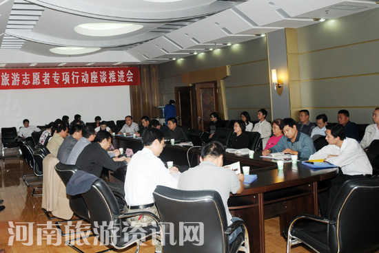 9月11日,河南省旅游志愿者專(zhuān)項(xiàng)行動(dòng)座談推進(jìn)會(huì)在河南博物院舉行,就河南省旅游志愿者專(zhuān)項(xiàng)行動(dòng)的開(kāi)展和旅游志愿服務(wù)示范站的創(chuàng)建活動(dòng)進(jìn)行了座談,并對(duì)“十一”期間旅游志愿者工作進(jìn)行了安排部署。共青團(tuán)河南省委副書(shū)記郭鵬、共青團(tuán)河南省委青年志愿者工作部部長(zhǎng)韓維俊、河南省旅游局直屬黨委專(zhuān)職副書(shū)記潘進(jìn)軍,各省轄市團(tuán)市委志愿者工作負(fù)責(zé)同志以及省內(nèi)旅游志愿者示范站點(diǎn)創(chuàng)建景區(qū)的負(fù)責(zé)同志參加了會(huì)議。
