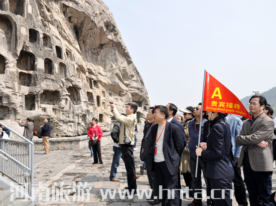 在全國首批5A級旅游景區(qū)龍門石窟,壯觀精美的佛雕藝術讓代表們嘖嘖稱嘆,流連忘返。