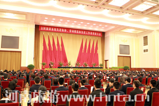 大會(huì)由人力資源和社會(huì)保障部、國(guó)家旅游局聯(lián)合召開。國(guó)家旅游局黨組全體成員、國(guó)家公務(wù)員局副局長(zhǎng)吳云華出席大會(huì),國(guó)家旅游局副局長(zhǎng)王志發(fā)主持會(huì)議。出席會(huì)議的還有受表彰的全國(guó)旅游系統(tǒng)先進(jìn)集體代表、勞動(dòng)模范、先進(jìn)工作者;往屆勞動(dòng)模范和先進(jìn)工作者代表;各省區(qū)市旅游局(委)負(fù)責(zé)人;國(guó)家旅游局機(jī)關(guān)和直屬單位負(fù)責(zé)人;北京市旅游企業(yè)和旅游院校代表共計(jì)650余人。我省洛陽(yáng)市旅游局、河南省旅游資訊有限公司、西峽縣旅游局、開封清明上河園被評(píng)為先進(jìn)集體;焦作云臺(tái)山旅游發(fā)展有限公司董事長(zhǎng)韓躍平、鄭州市導(dǎo)游管理服務(wù)中心導(dǎo)游員楊軍被評(píng)為勞動(dòng)模范;淮陽(yáng)縣旅游局長(zhǎng)張萍、許昌市旅游局長(zhǎng)馬法友被評(píng)為先進(jìn)工作者。國(guó)家公務(wù)員局副局長(zhǎng)吳云華宣讀了表彰決定;兩部門領(lǐng)導(dǎo)為獲獎(jiǎng)人員代表頒獎(jiǎng);五名先進(jìn)集體、勞動(dòng)模范和先進(jìn)工作者代表作了典型發(fā)言。我省西峽縣旅游局長(zhǎng)孫占梅作為領(lǐng)獎(jiǎng)代表上臺(tái)接受了國(guó)家局領(lǐng)導(dǎo)的頒獎(jiǎng)。最后,國(guó)家旅游局局長(zhǎng)邵琪偉作了重要講話。