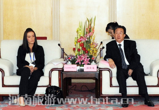 9月26日,省長(zhǎng)郭庚茂在鄭州會(huì)見(jiàn)了前來(lái)出席2012中國(guó)(鄭州)世界旅游城市市長(zhǎng)論壇的聯(lián)合國(guó)世界旅游組織執(zhí)行主任皮埃爾夫人瑪麗亞·默西迪斯、世界旅游及旅行理事會(huì)執(zhí)行總監(jiān)洛琳·普朗特、亞太旅游協(xié)會(huì)首席執(zhí)行官特別顧問(wèn)張科德等嘉賓。