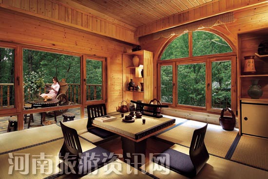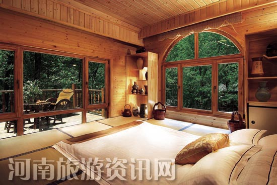 老界嶺避暑山莊,坐落在河南省十大魅力景區(qū)——中國•南陽世界地質(zhì)公園核心景區(qū)老界嶺風(fēng)景區(qū)內(nèi),海拔高度1500米,全年平均氣溫20度左右。2007年被評(píng)為“中國最佳休閑度假勝地”,“中國最佳商務(wù)度假酒店”。避暑山莊由 30 套竹制別墅, 30 套木制別墅, 4 套現(xiàn)代別墅, 47 間綜合樓錯(cuò)落有致組成。林中有房,房中有林是山莊的一大亮點(diǎn)。獨(dú)具特色的別墅,涵蓋了韓式、日式、歐式、中式等幾個(gè)風(fēng)格。人性化的房間設(shè)置、風(fēng)味餐飲綜合服務(wù)、具有山野特色的各種娛樂休閑項(xiàng)目,都讓游客盡情享受原始森林中別樣的度假生活。