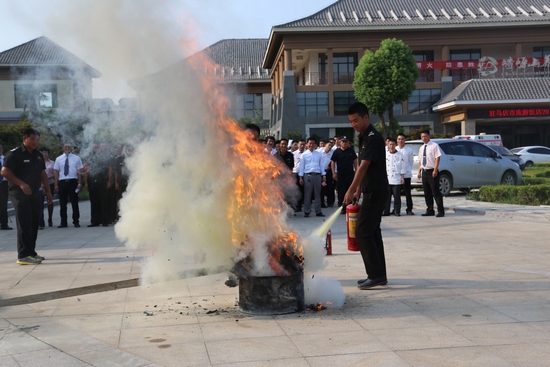 演練過程中,遂平縣公安消防大隊大隊長梅志立現(xiàn)場講解了消防器材的正確使用,進行了現(xiàn)場滅火示范,并指導(dǎo)酒店員工使用滅火器對現(xiàn)場油桶進行撲救。