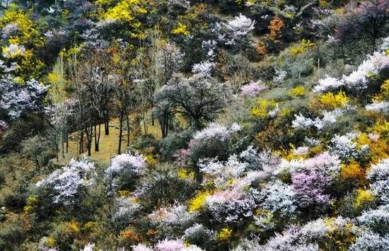 在山桃花和連翹花期交錯(cuò)的時(shí)節(jié),粉紅的山桃花和嫩黃的連翹花相映成趣,爭(zhēng)奇斗艷。這樣的春光里,約三五好友,踏青春游,親近自然。關(guān)山景區(qū)歡迎廣大游客光臨!