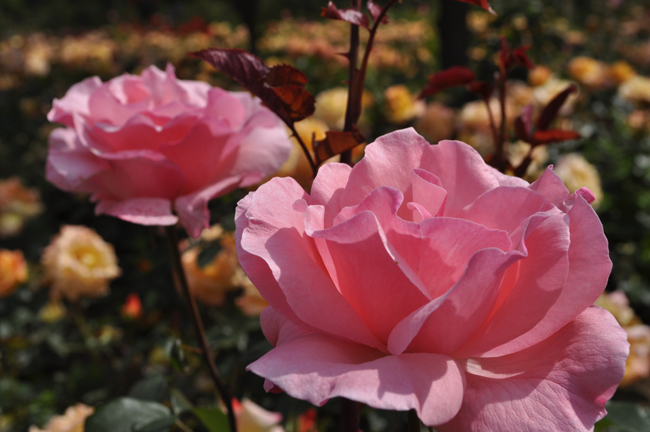 據(jù)了解,雞冠洞景區(qū)的月季園位于雞冠洞百花坡對面,是景區(qū)于2013年4月投資35萬元建成的,觀賞面積6000余平方米的月季園,共栽植了“選擇”、“紅雙喜”、“黃和平”、“黃金向上”、“梅朗口紅”、“漂多斯”的6大色系20余個品種的3萬余柱月季苗木,園內(nèi)鋪設(shè)了青石游覽步道,修剪了休憩桌椅、游樂廣場、照相點、廊架、觀賞石等設(shè)施,將路、石、水、林、花、廣場融為一體, 每年“春末夏初伴著牡丹的影子開放迎賓,馨香滿園;ㄆ谶B續(xù)不斷,一直持續(xù)到大雪紛飛,使得景區(qū)實現(xiàn)了四季常青、季季有花。體驗“人在畫中游”的美妙。