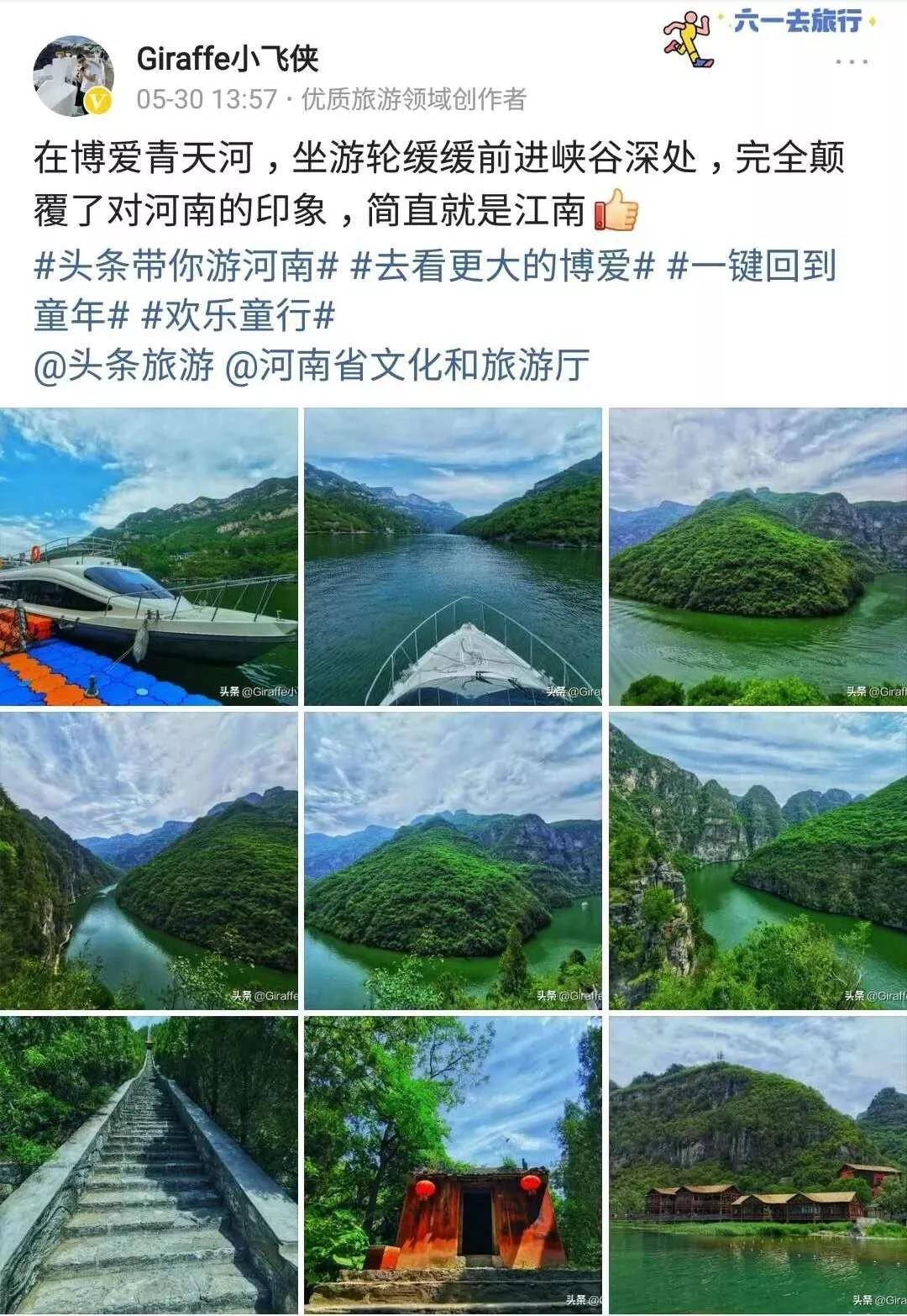 “在博愛青天河,坐游輪緩緩前進(jìn)峽谷深處,完全顛覆了對(duì)河南的印象,簡(jiǎn)直就是江南。”環(huán)球旅行探險(xiǎn)60國(guó)、擁有31萬粉絲的文旅達(dá)人“Giraffe小飛俠”如是說。