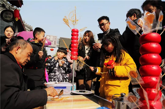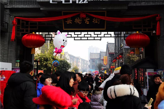 在縣衙古街,100余家特色小吃千余種美食,讓人垂涎。捏糖人、畫糖人、粘米球、古玩及各項游樂設施等熱鬧喜慶,為廣大游客和市民營造了新春樂園。
