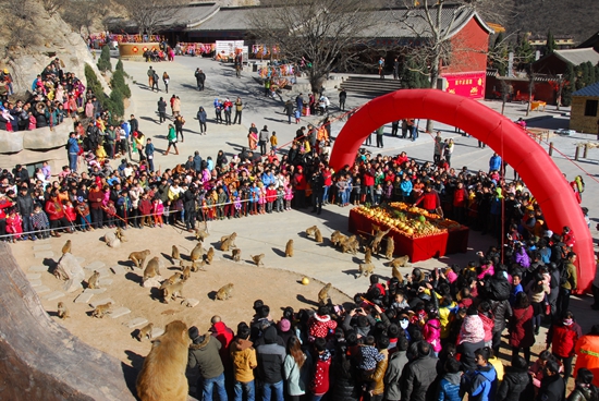 1月1日,五龍口景區(qū)購置了1000多斤各式新鮮水果,為獼猴們舉辦了一個“新春水果宴”。當(dāng)天,各路猴王率領(lǐng)它們的猴子猴孫共赴“盛宴”,各地游客也紛紛慕名前來一睹猴子們這場趣味十足的奇異宴會。這邊是猴子們你爭我搶、大快朵頤地享用美味,那邊是游客們歡聲笑語,拿出相機(jī)大拍特拍。猴叫聲、人笑聲此起彼伏,好一派熱鬧場景。