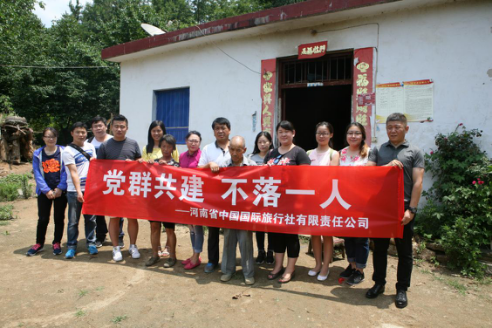 “黨群共建,不落一人”,在黨總支書記黃德洲的號召下,2017年6月29日,河南省中國國際旅行社有限責任公司的黨員們在張亞輝總經(jīng)理的帶領下前往洛陽市嵩縣車村鎮(zhèn)天橋溝村進行黨建活動及扶貧慰問。