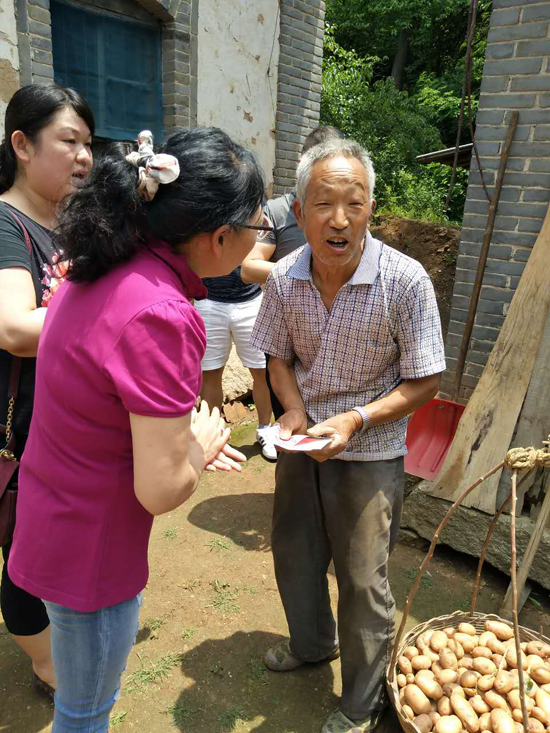 早上7點,太陽鉆出了云層,精神抖擻,紅光四溢,把整個世界照的通亮。太陽承載了光明,我們滿帶著希望,大家在公司樓下集合,準時出發(fā)。在驅車前往天橋溝村的路上,王森副總經(jīng)理向大家介紹了公司幫扶對象的基本情況,他們目前的生活狀況。張亞輝總經(jīng)理指出:扶危濟困,扶弱助貧是中華民族的傳統(tǒng)美德。我們要繼續(xù)弘揚民族的傳統(tǒng)美德,秉承我們河南國旅優(yōu)良的企業(yè)文化。真正把河南國旅“不怕困難,專業(yè)高效,團隊合作,勇于創(chuàng)新”的核心價值觀應用到工作和生活中,將不怕困難的精神傳達給我們的貧困戶,同時在一定程度上給予他們力所能及的幫助,鼓勵并幫助他們早日脫貧。