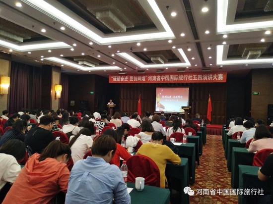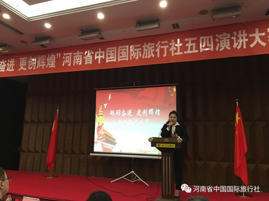 為隆重紀念五四運動九十九周年,繼承發(fā)揚五四光榮傳統(tǒng),弘揚五四運動精神,全面深入貫徹落實黨的十九大精神,又適逢河南省中國國際旅行社有限責任公司成立六十周年,為增強公司青年員工的責任感、使命感,為激勵全體員工愛國愛黨愛社愛崗的情感,經河南國旅黨支部研究,于2018年5月4日下午2點在河南泓元大酒店舉辦“砥礪奮進,更創(chuàng)輝煌”為主題的五四演講比賽。