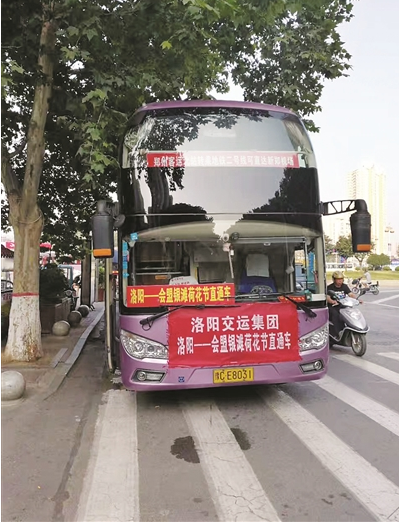 然而,面對此般荷花美景,“無車一族”難免會因路途不便,擾了賞荷的興致。為了讓游人的賞荷之旅更加舒心,今年荷花節(jié)期間特開通了“洛陽——會盟銀灘荷花節(jié)直通車”(以下簡稱賞花直通車),市區(qū)的“無車一族”不妨乘坐直通車一睹荷花風(fēng)采。來自澗西區(qū)的石先生今年62歲了,這次和老伴兒一起乘坐賞花直通車到銀灘看荷花,他表示:“兒女平日工作太忙,自己又不會開車,想出去游玩也不方便,這不,今天在家門口坐著直通車直接就到了銀灘。”