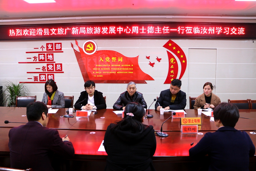 2018年3月8日,河南省滑縣文旅廣新局黨組成員、旅游發(fā)展中心主任周士德等一行五人組成考察組蒞臨汝州旅游局學(xué)習(xí)交流旅游標(biāo)準(zhǔn)化創(chuàng)建工作經(jīng)驗(yàn)。汝州市旅游局黨組書記、局長李慧娟就全市創(chuàng)建河南省旅游標(biāo)準(zhǔn)化試點(diǎn)市工作的經(jīng)驗(yàn)進(jìn)行了匯報(bào)和交流,考察組一行在副局長黨曉葉陪同下觀看了汝州市旅游標(biāo)準(zhǔn)化創(chuàng)建匯報(bào)片和創(chuàng)建資料后,又實(shí)地對(duì)特色商品推薦店玉松汝瓷、旅游星級(jí)飯店金鼎酒店和怪坡景區(qū)及風(fēng)穴寺的旅游標(biāo)準(zhǔn)化情況進(jìn)行了調(diào)研,并沿途觀看了旅游廁所、旅游導(dǎo)向牌、公共信息導(dǎo)向牌等旅游硬件配套設(shè)施。