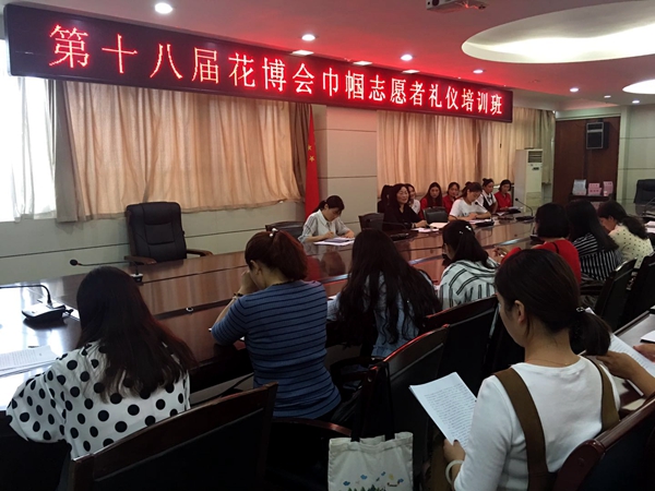 為更好的服務(wù)第十八屆花博會的順利召開,提高講解員及隨車工作人員的服務(wù)質(zhì)量和整體素質(zhì),9月14日上午,鄢陵縣旅游局聯(lián)合婦聯(lián)會組織召開第十八屆花博會隨車工作人員和巾幗志愿者禮儀培訓(xùn)。