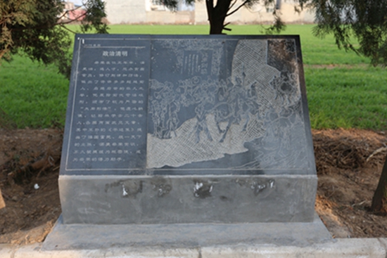 后周皇陵位于新鄭市區(qū)北18公里的郭店村附近,現(xiàn)存陵墓四座,即嵩陵為后周太祖郭威墓、慶陵為后周世宗柴榮墓、順陵為后周恭帝柴宗訓(xùn)墓、懿陵為后周世宗皇后符氏墓,該陵墓于2001年6月25日被國(guó)務(wù)院公布為全國(guó)重點(diǎn)文物保護(hù)單位。為大力宣揚(yáng)后周世宗柴榮勵(lì)精圖治,倡儉樸,反奢華的廉政精神,2016年11月,我局在慶陵后周世宗柴榮墓前精心打造了“廉政文化石刻展”。“廉政文化石刻”為花崗巖中國(guó)黑制成,長(zhǎng)1.5米、寬9.5米、高1米,碑文內(nèi)容分兩大部分,第一部分為英武人生:說(shuō)的是柴榮早年經(jīng)商、投筆從戎、即位挫敵、整頓軍政、西敗后蜀、三征南唐、北伐契丹、英年早逝八部分;第二部分為一代名君:說(shuō)的是柴榮神武雄略、軍功卓著、政治清明、恢復(fù)經(jīng)濟(jì)、大興文教、崇尚節(jié)儉、婚姻和美和完美皇帝八部分組成。該“廉政文化石刻展”,圖文并茂,內(nèi)容豐富,向大家詳細(xì)介紹了五代第一明君——柴榮一生的豐功偉績(jī),欣賞“廉政文化石刻”,可以讓我們?cè)谶M(jìn)一步了解柴榮一生勤政廉政思想以及高尚的思想品德的同時(shí),將歷史廉政文化資源充分融入到現(xiàn)實(shí)生活中,更使廣大黨員干部群眾在耳濡目染、潛移默化中接受廉政教育,增強(qiáng)廉潔意識(shí)。