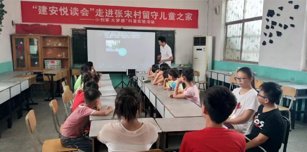 為進一步培養(yǎng)農(nóng)村少年兒童的創(chuàng)新精神和實踐能力,使他們掌握科學(xué)實驗的方法,了解科學(xué)實驗的過程,激發(fā)他們愛科學(xué)、學(xué)科學(xué)、用科學(xué)的興趣,2018年8月7日下午3:30,許昌市建安區(qū)文廣局圖書館組織文化志愿服務(wù)小分隊走進蔣李集鎮(zhèn)張宋村留守兒童之家,為兒童之家的30余名小朋友帶來了一場別開生面的科普實驗活動。
